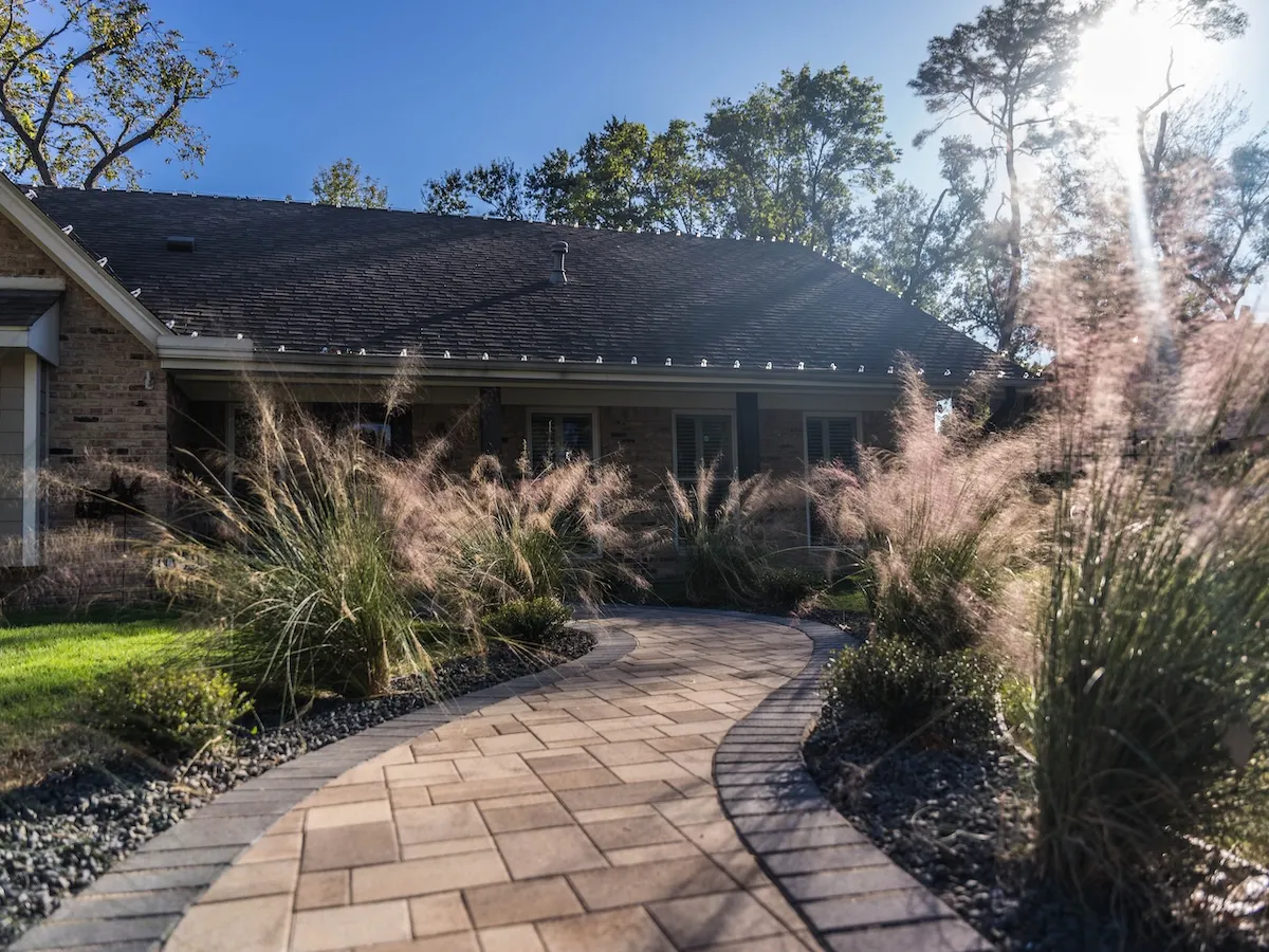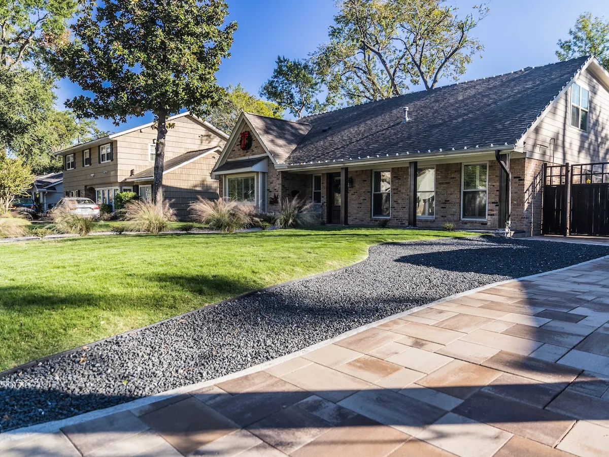 In adherence to local city ordinances, we enhanced the driveway by incorporating sleek Black Star gravel, achieving both functionality and visual interest. The front walkway was designed with natural, flowing edges that evoke a sense of grace, crafting an elegant entrance that warmly welcomes guests and enhances the overall charm of the home.