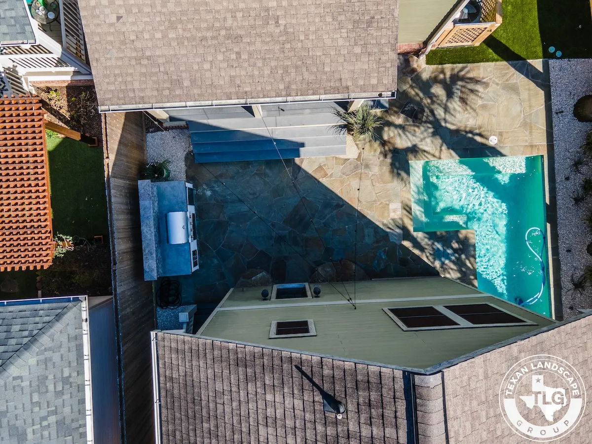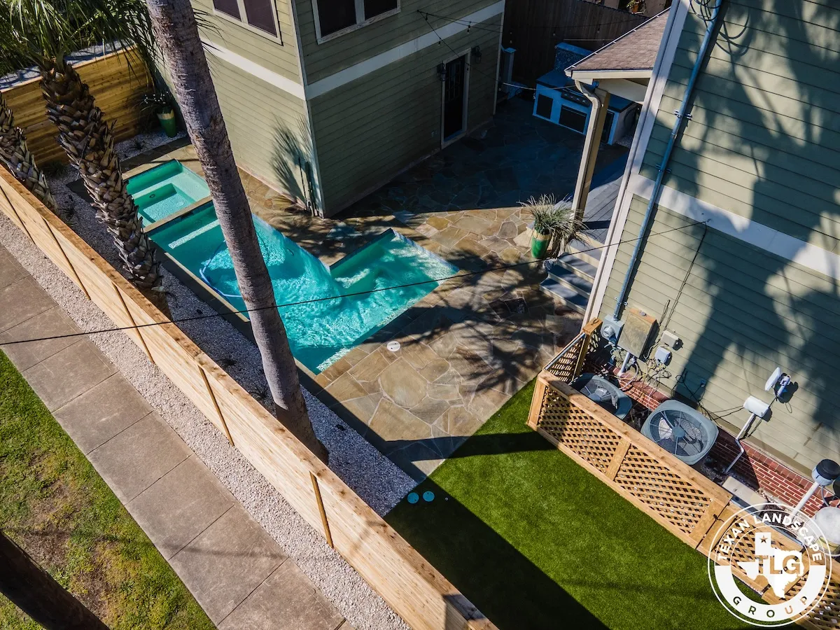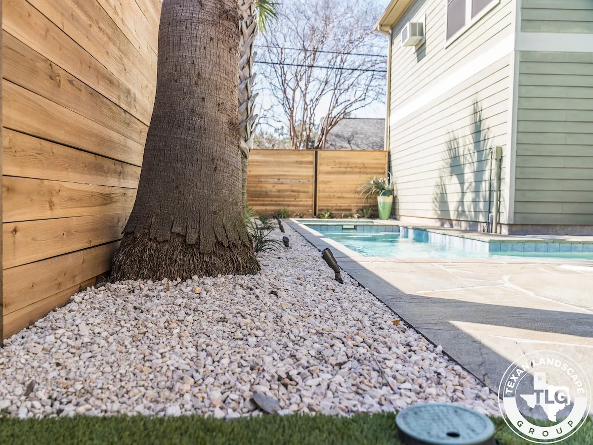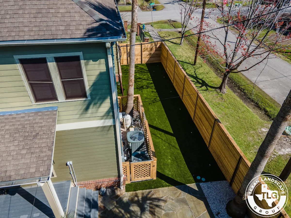 Nestled in Houston’s Heights neighborhood, this backyard transformation by Texas Landscape Group blends privacy, functionality, and style. A new horizontal cedar fence replaces the old rod iron barrier, adding warmth and character while maintaining structural integrity.