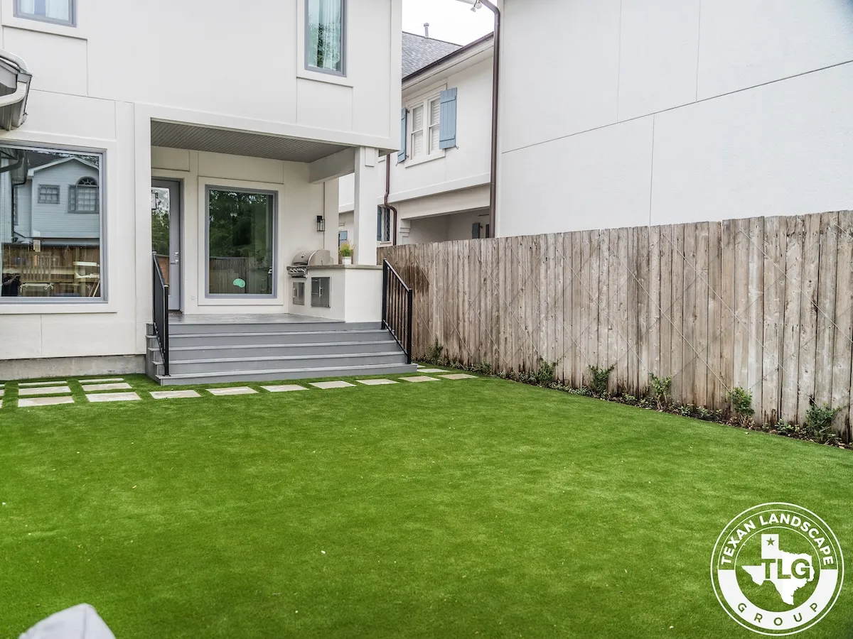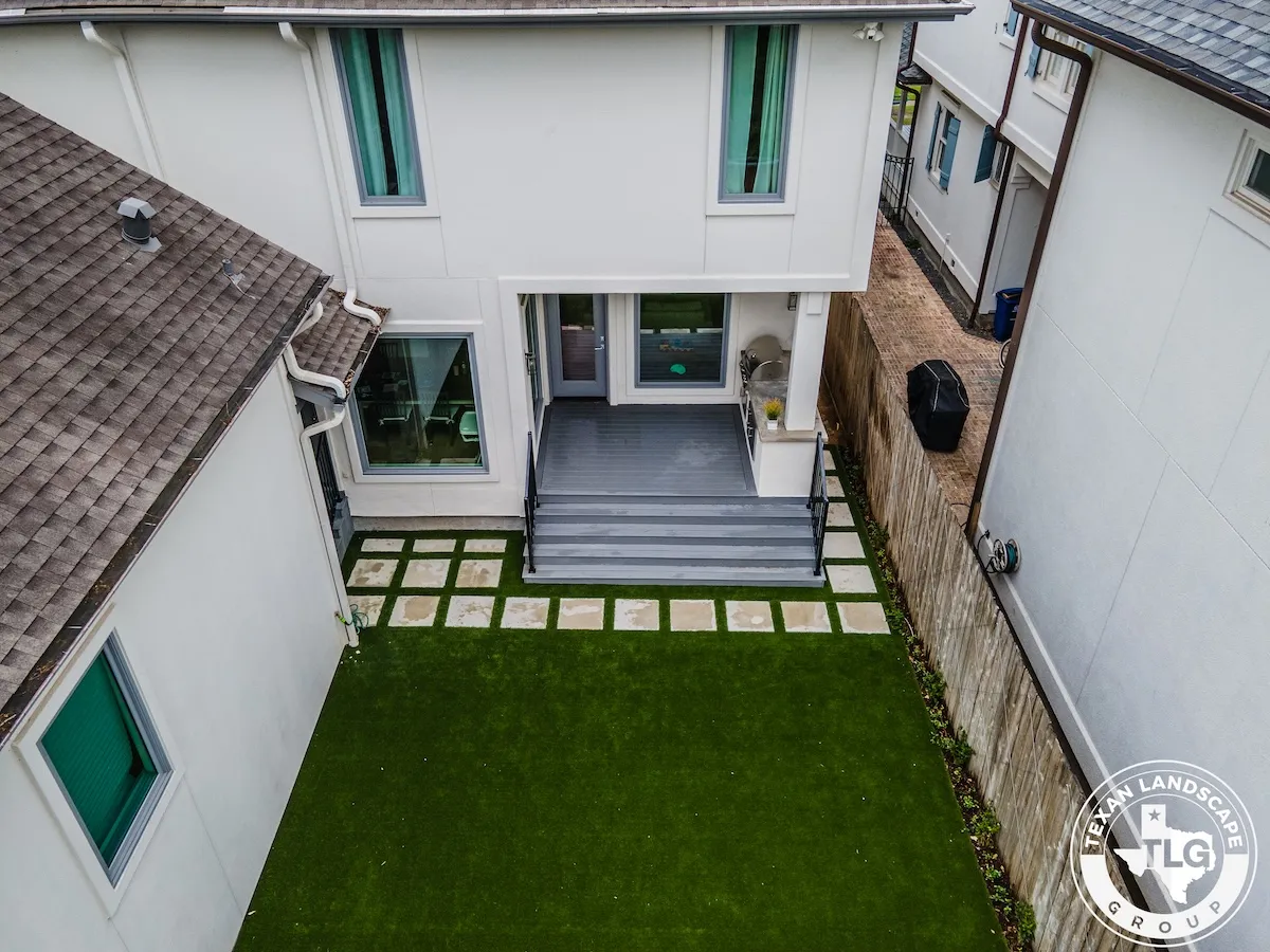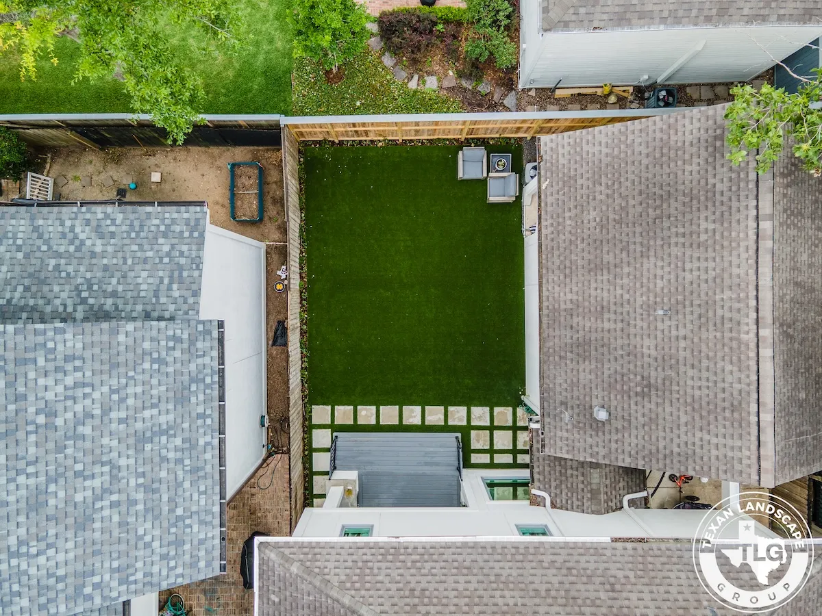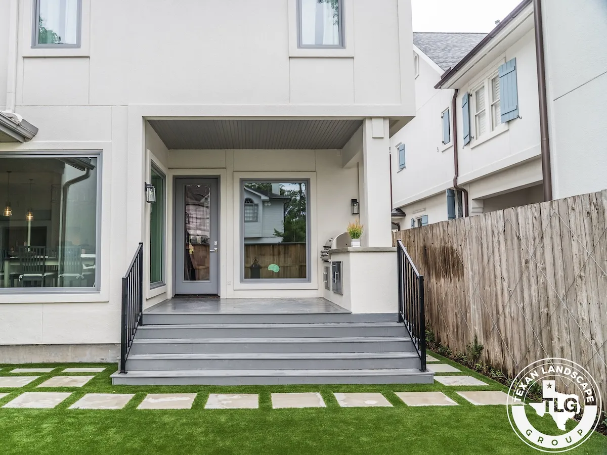 Tucked away in the heart of Houston’s West University neighborhood, this backyard transformation by Texan Landscape Group reimagines a highly constricted space into something open, usable, and full of charm. The original layout featured a clunky deck and narrow staircase that disrupted flow and made daily movement from the house to the garage apartment a chore. Our goal was to remove those barriers and make the space feel like a true extension of the home.