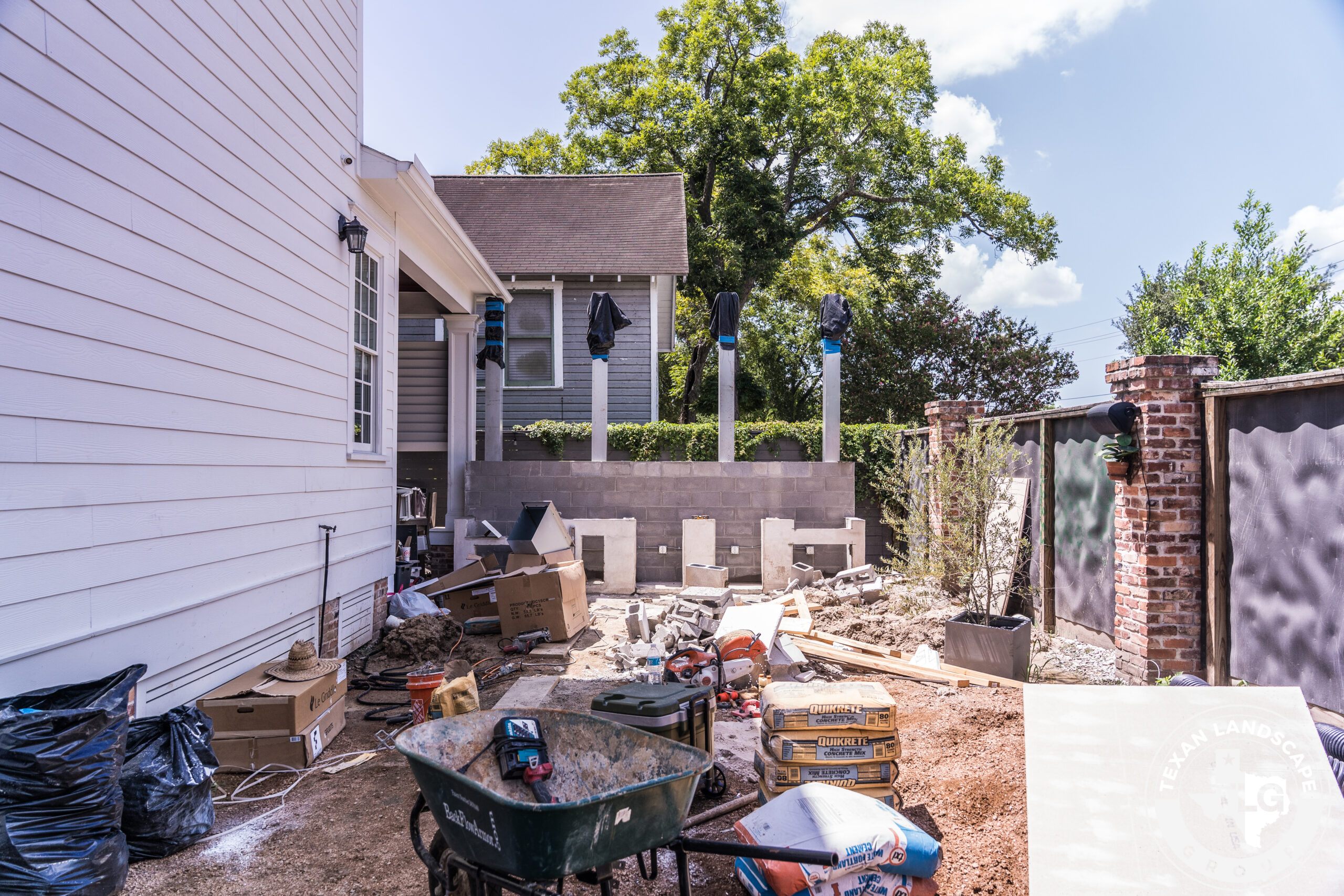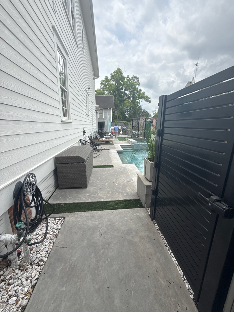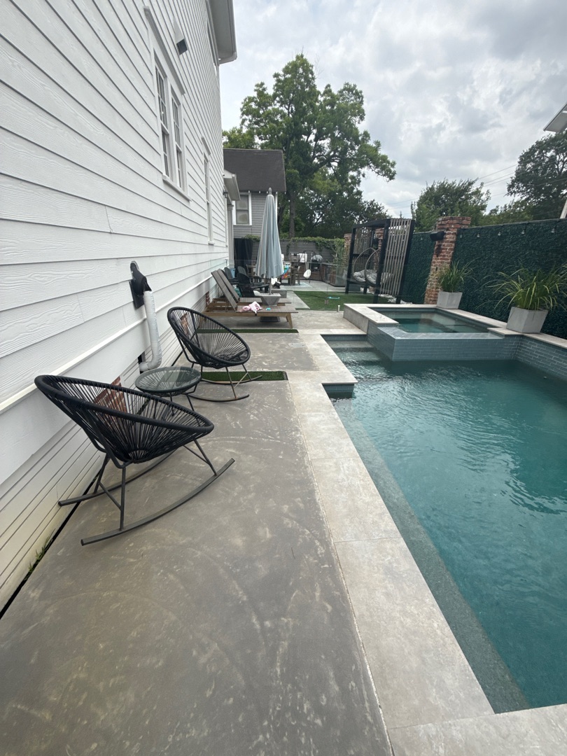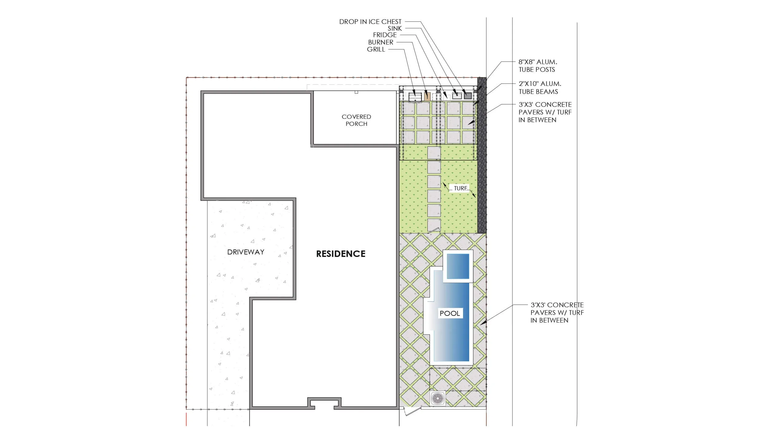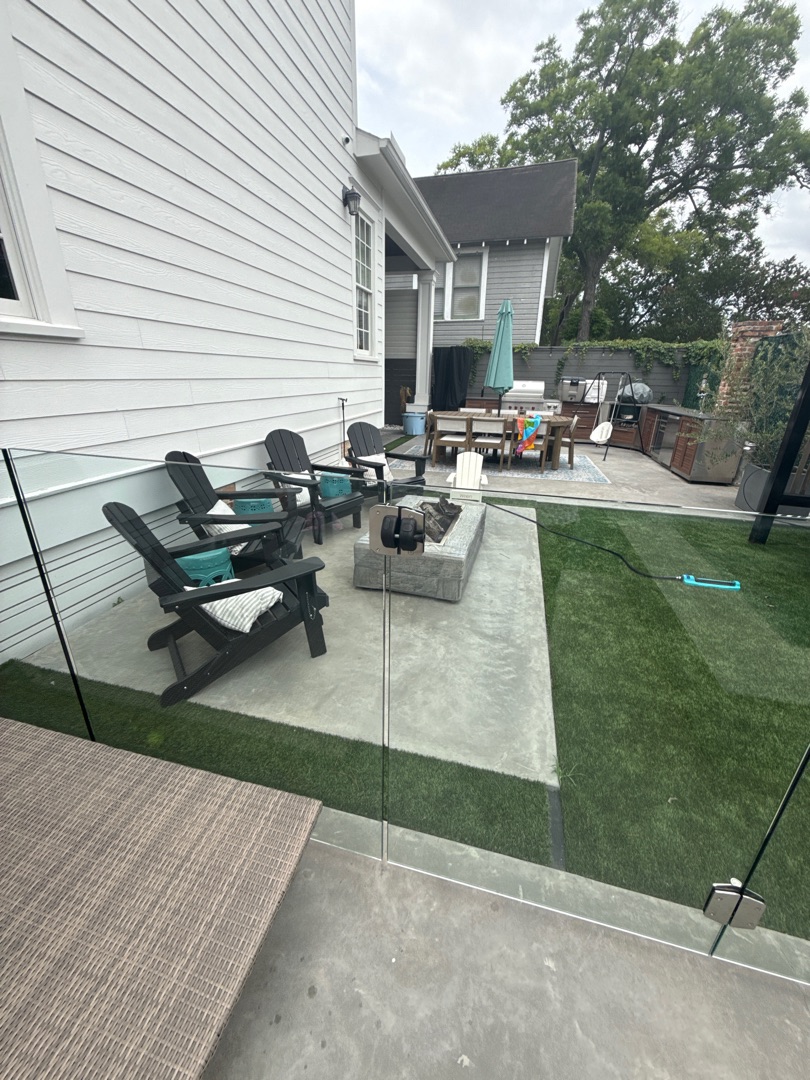 This backyard transformation in the Heights, Houston, focused on creating a cohesive, functional space around the existing pool while complementing the home’s contemporary style. The original layout felt disjointed with oversized pavers, a pergola, and a fireplace that lacked flow. Our redesign opened the yard, added a covered entertainment area, and introduced a dedicated play zone for the kids.