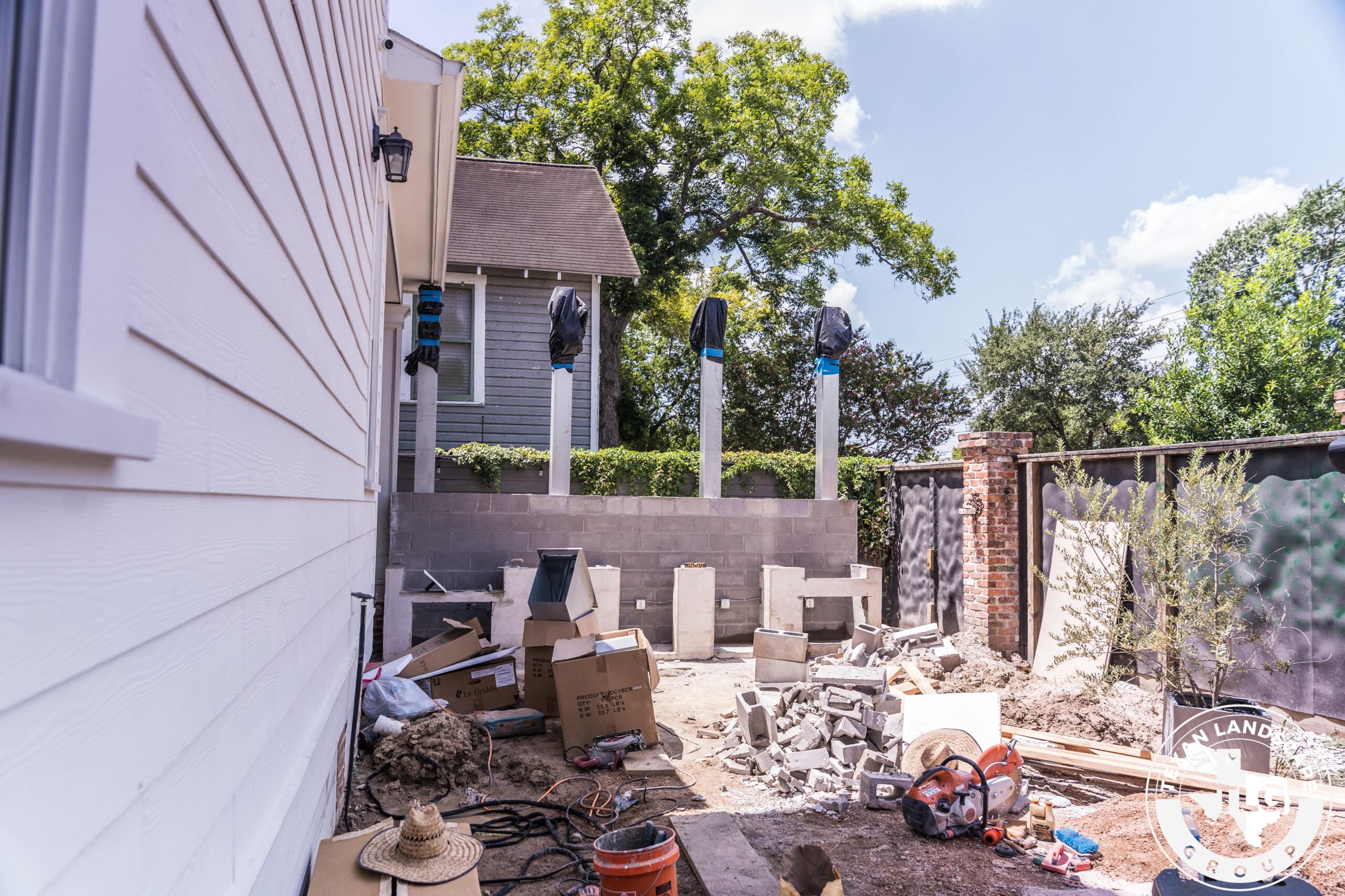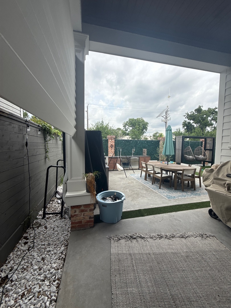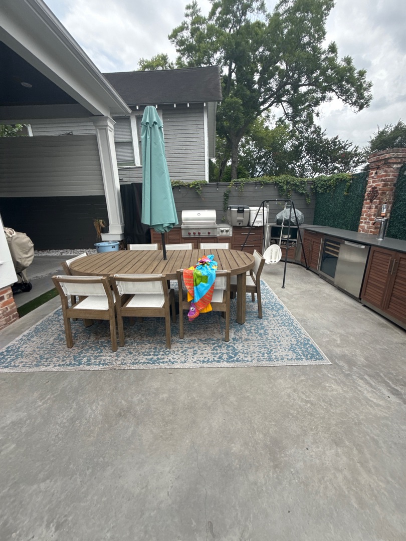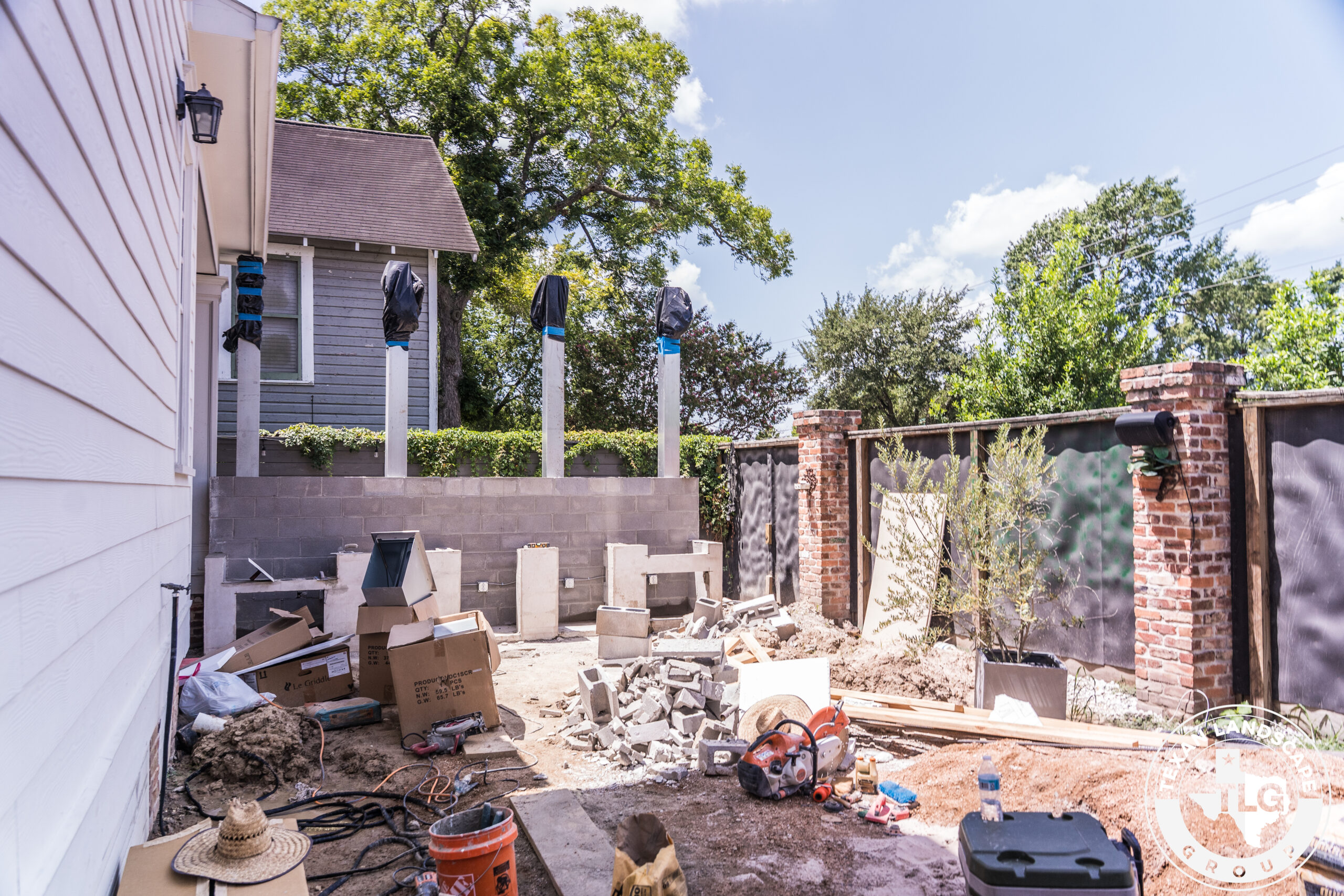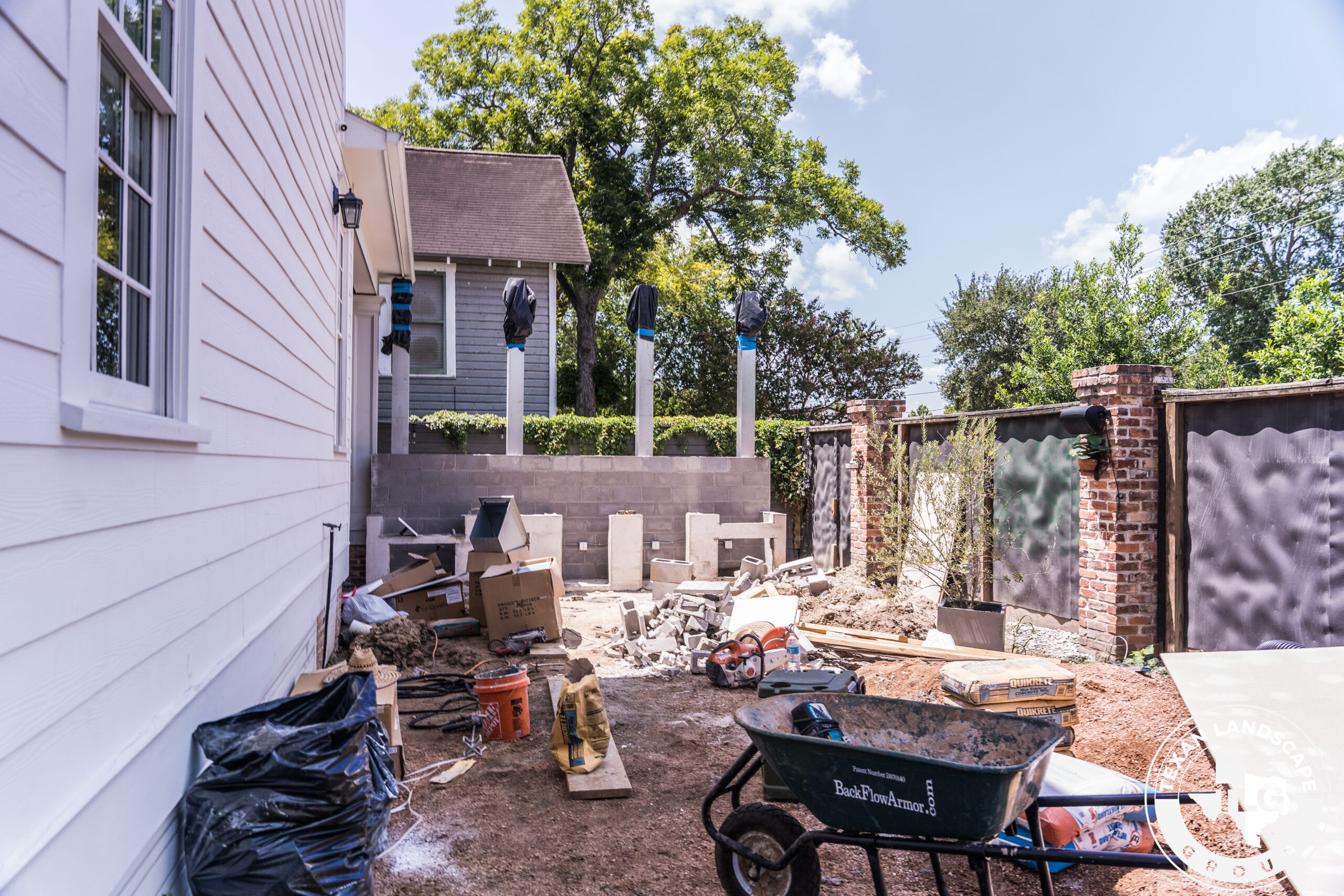 This backyard transformation in the Heights, Houston, focused on creating a cohesive, functional space around the existing pool while complementing the home’s contemporary style. The original layout felt disjointed with oversized pavers, a pergola, and a fireplace that lacked flow. Our redesign opened the yard, added a covered entertainment area, and introduced a dedicated play zone for the kids.
