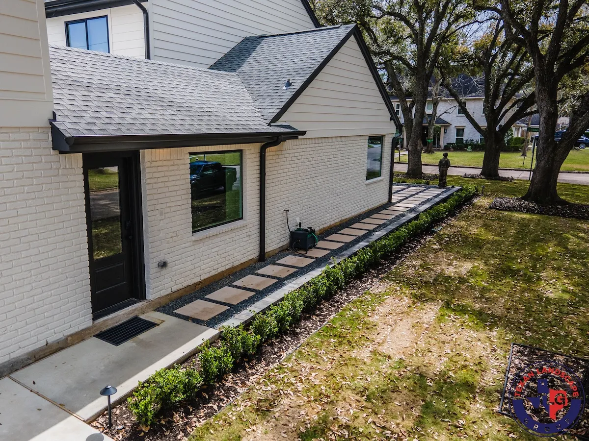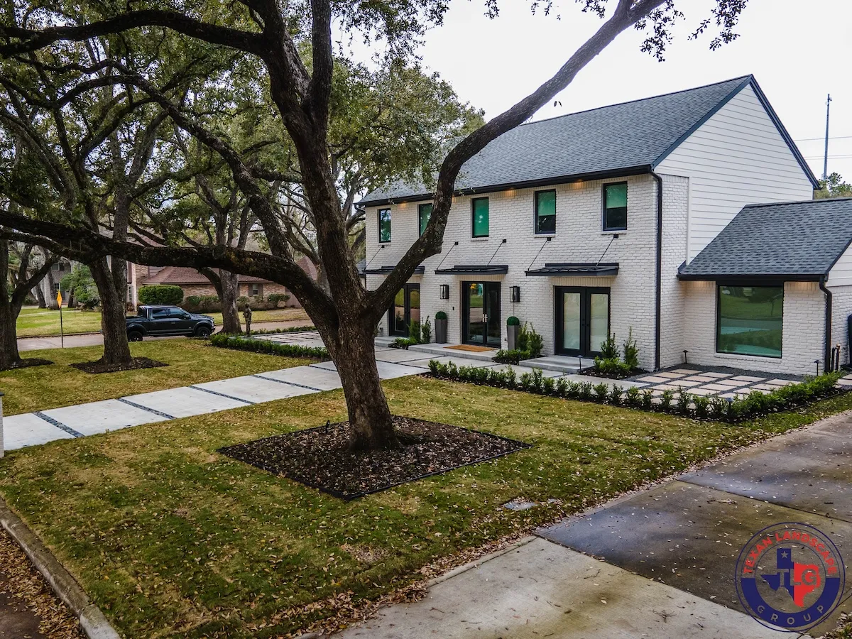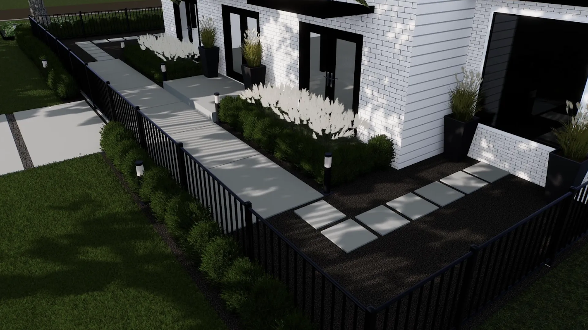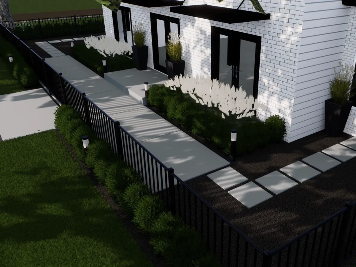 Discover the breathtaking landscape project completed during the Winter of 2025. This ambitious design has been crafted with careful attention to detail, creating a harmonious blend between the contemporary aesthetics of the home and sophisticated outdoor elements. Central to this renovation is the elegantly updated white brick home, which serves as a striking focal point.