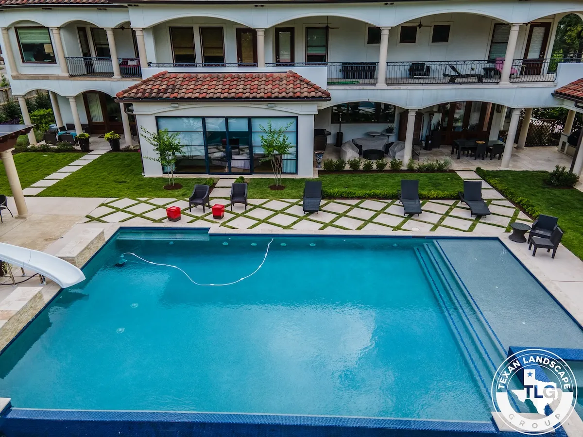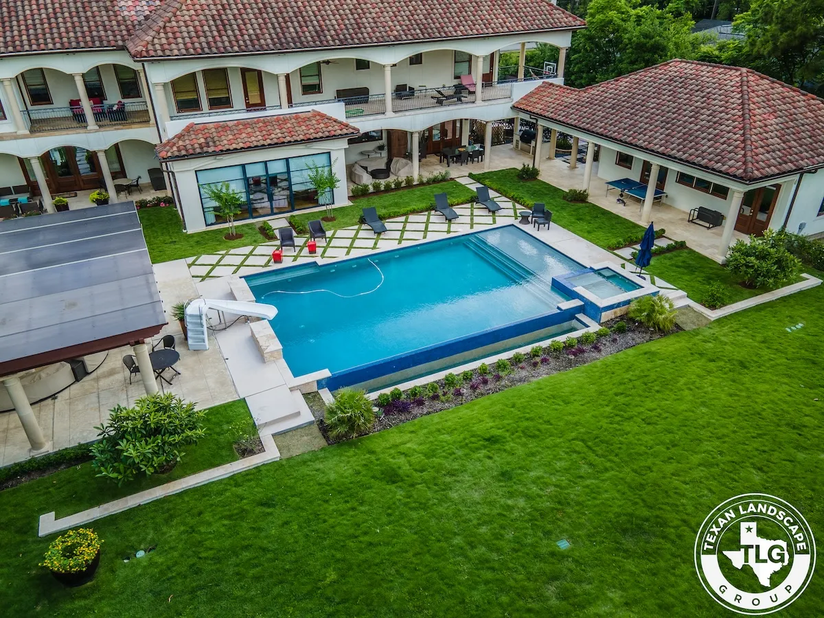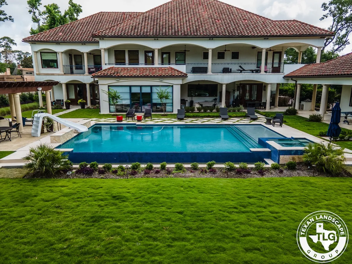Set on a sprawling luxury estate in Houston’s Memorial neighborhood, this project was all about creating a refined outdoor setting that matched the home’s elegance and scale. We started by installing fresh, vibrant sod throughout the property, instantly transforming the landscape with a crisp, uniform green canvas.