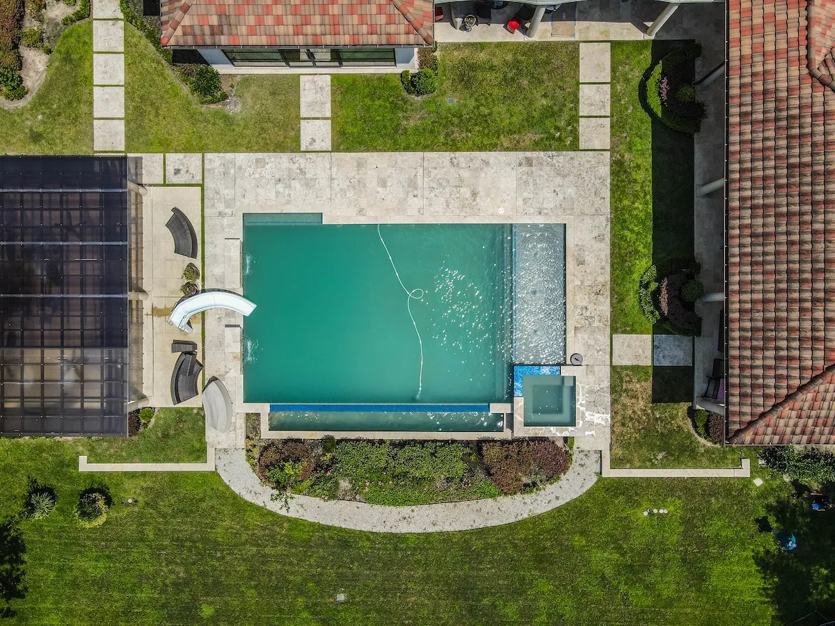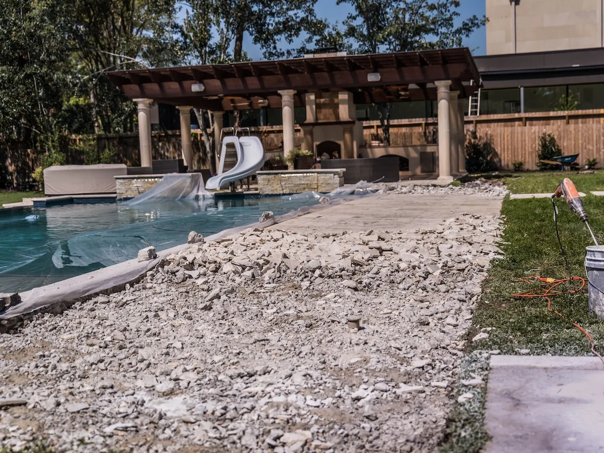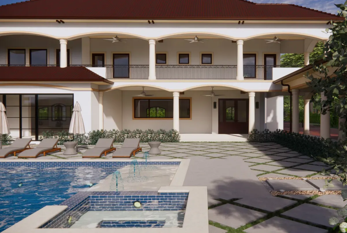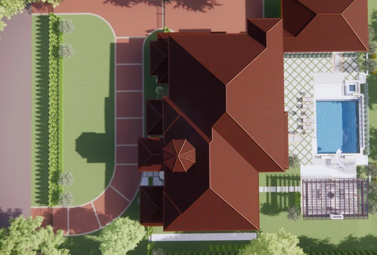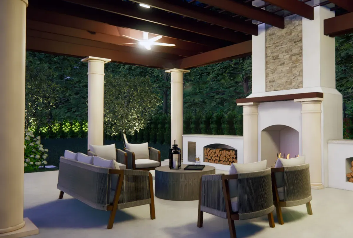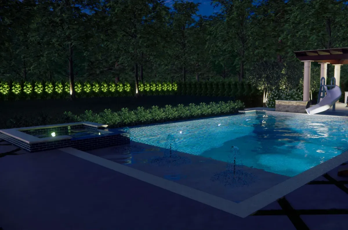 One of the standout features is the expansive hardscape design. We laid oversized 2×2 pavers in a striking diamond pattern that gives the space a modern, structured feel while maintaining a sense of openness. This layout not only defines walkways and gathering areas but also elevates the overall visual impact of the estate.