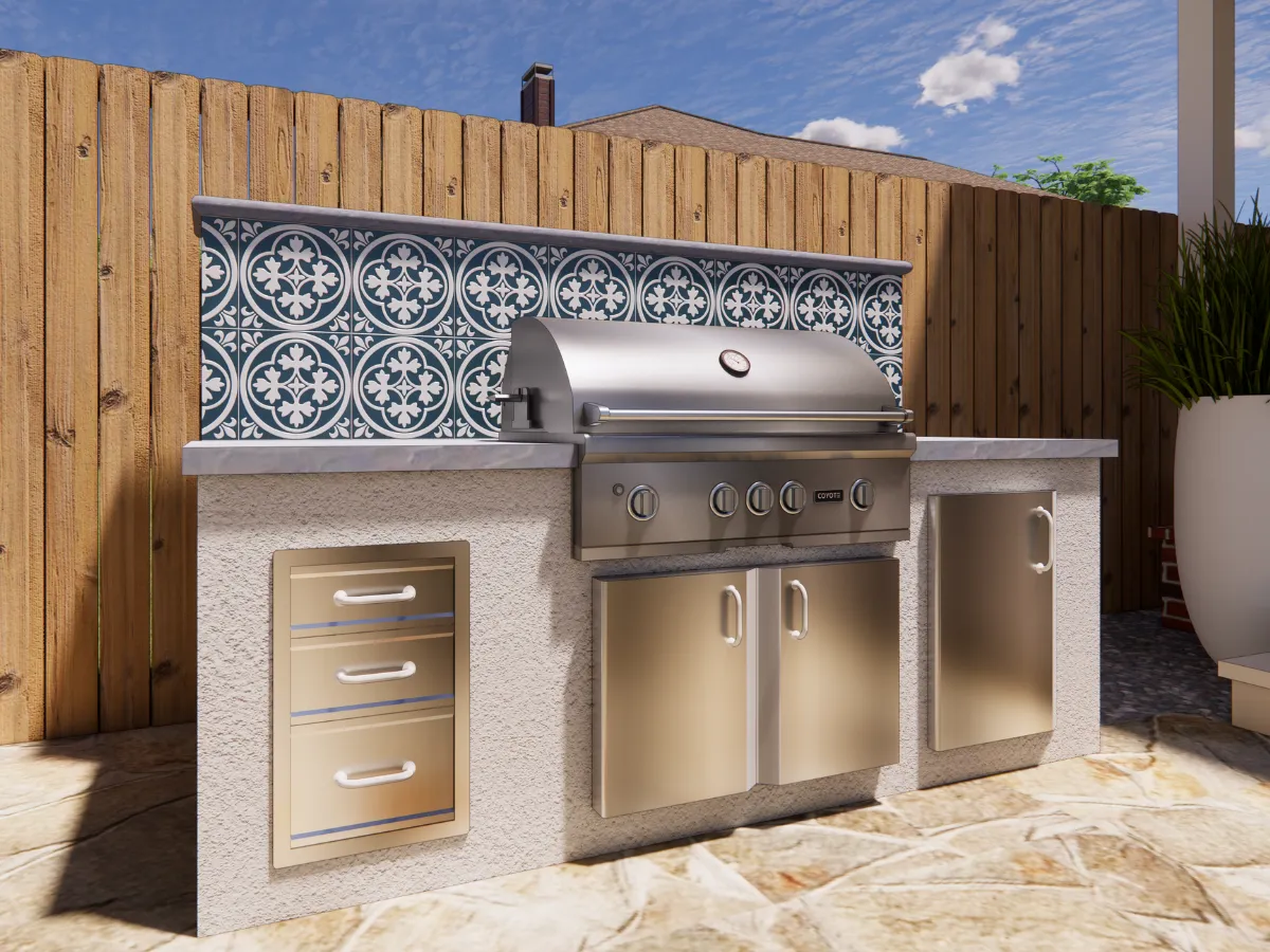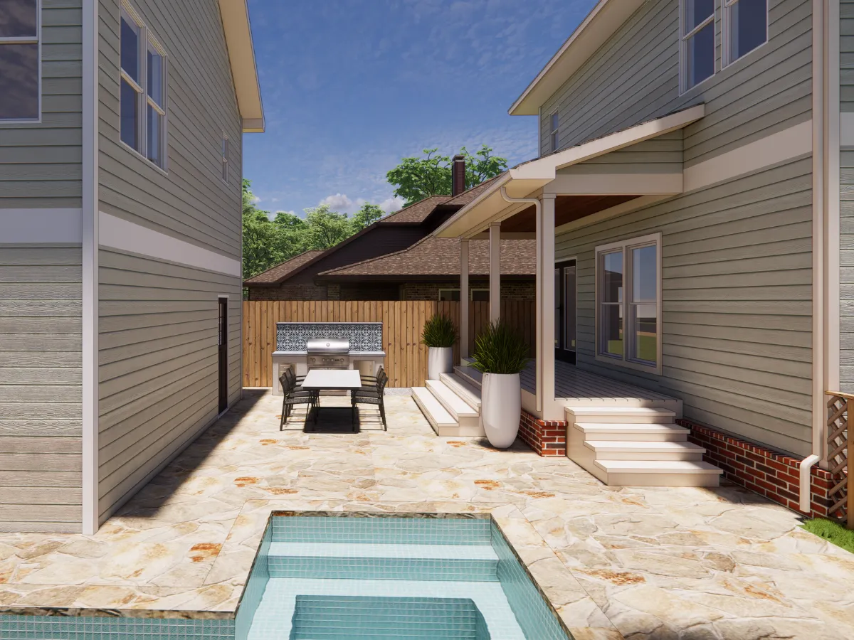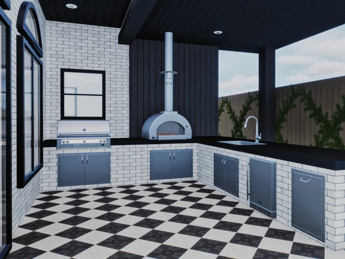 In the backyard, a fully equipped outdoor kitchen will serve as the heart of the home’s entertainment space. Designed with both form and function in mind, the setup makes it easy to host, cook, and enjoy the outdoors year-round.