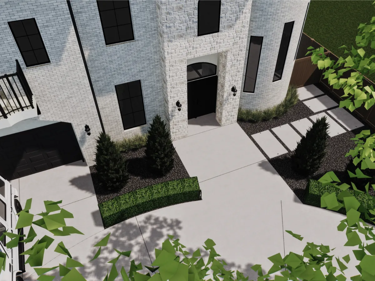 Tucked away in Houston’s River Oaks neighborhood, this front yard and driveway renovation is under construction by Texan Landscape Group. This project brings together curb appeal, functionality, and outdoor living in one cohesive design. A new curved driveway will anchor the front of the property, flanked by sleek landscape lighting that subtly highlights the path while showcasing the home’s architecture after dark.