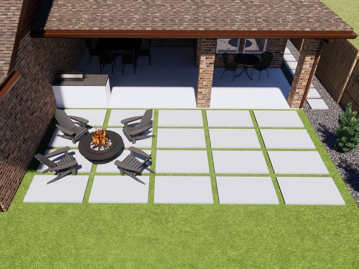 We began the project by installing a series of custom-formed 3×5 concrete pavers that were poured on-site and finished with a brushed texture for a modern yet timeless aesthetic. These pavers were thoughtfully placed to create a patio sitting area, complemented by a sleek band of gravel outlining the entire perimeter.