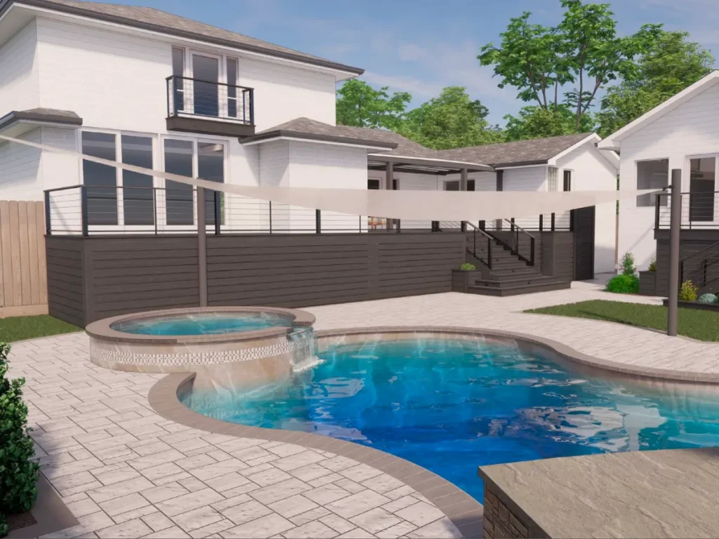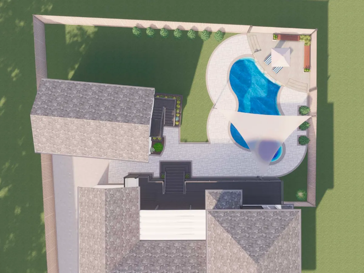 Located in Houston’s Meyerland neighborhood, this outdoor transformation by Texan Landscape Group blends clean design with practical upgrades for modern living. To elevate the backyard’s functionality, we will install custom shade sails that offer visual interest and sun protection without obstructing the open feel of the space.