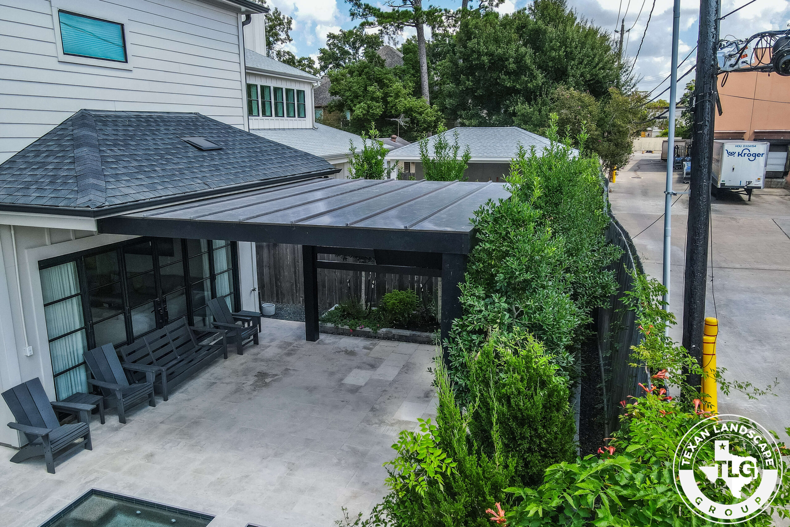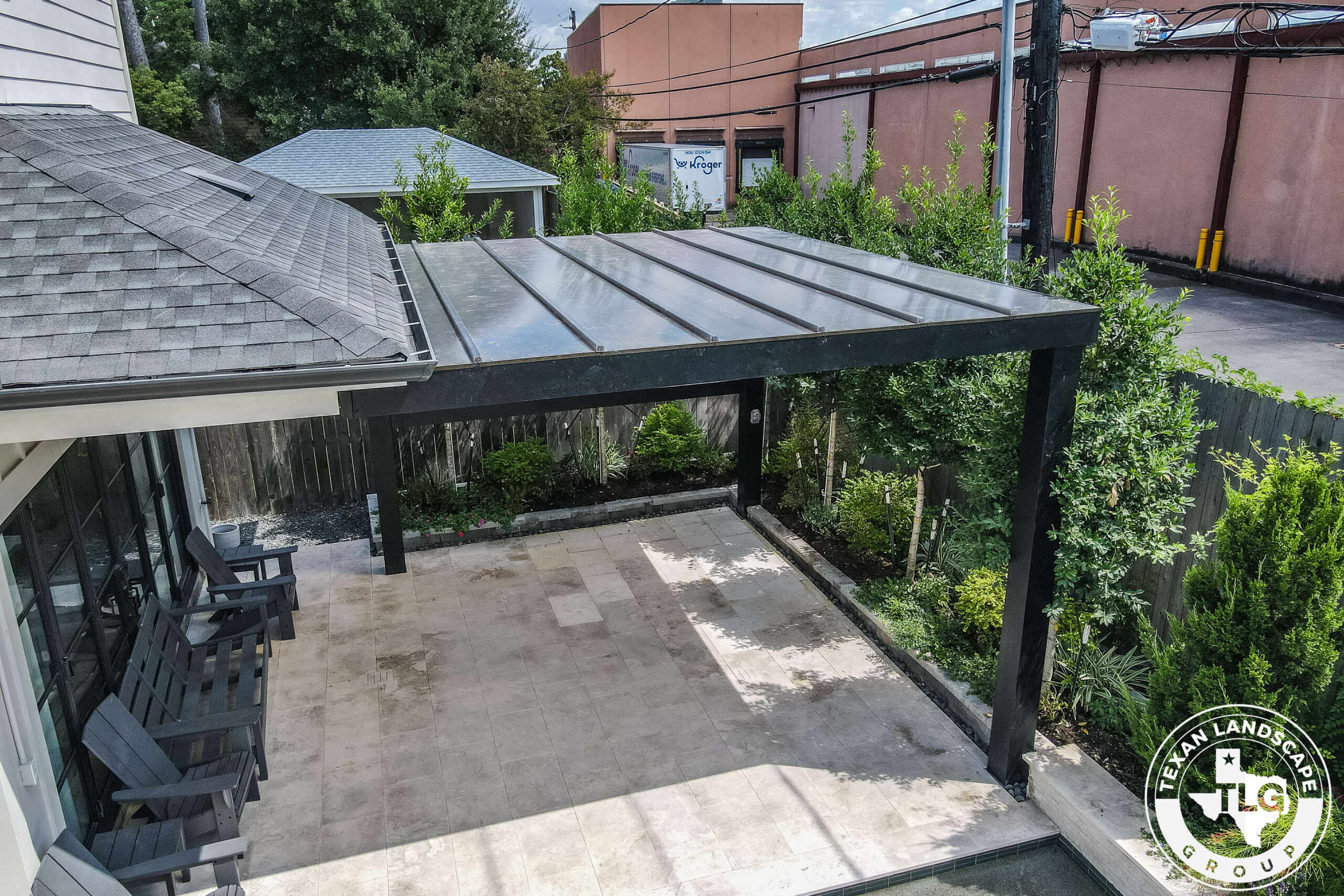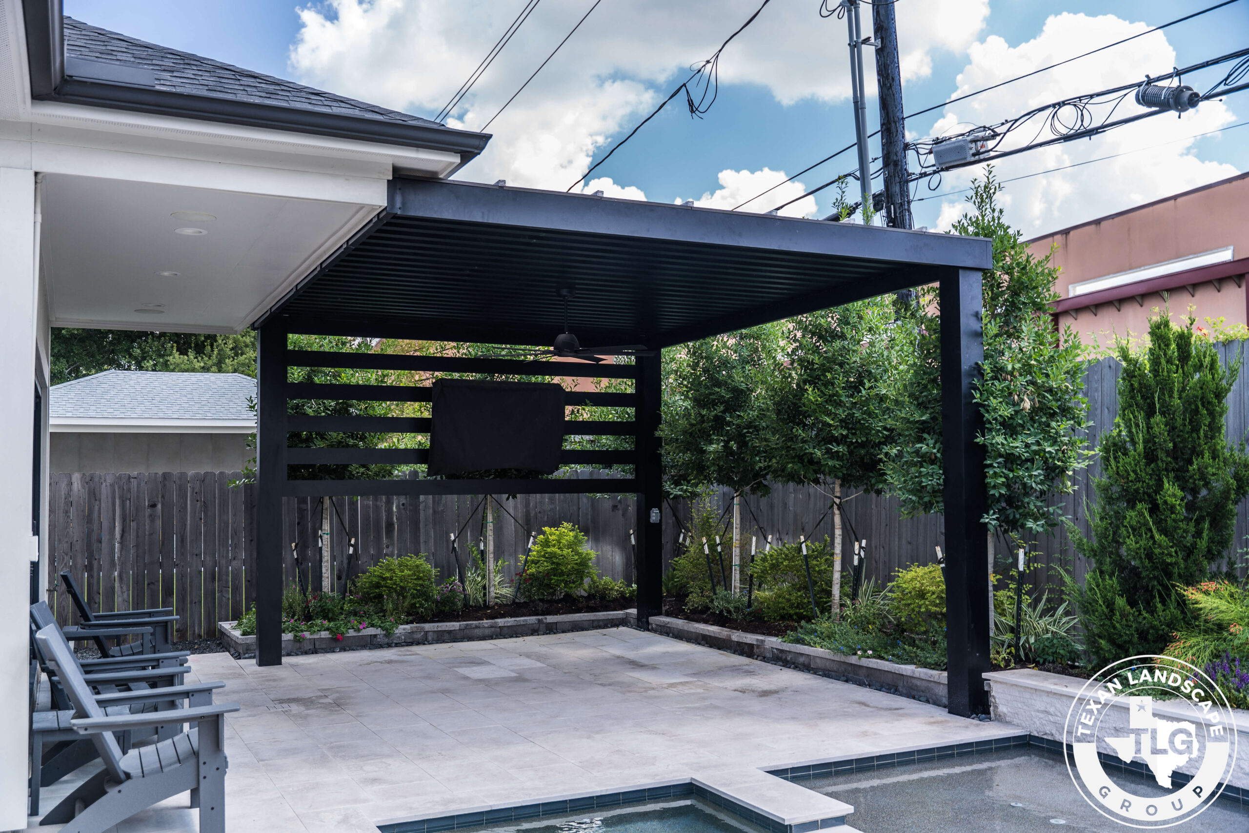 This backyard renovation in Houston, Texas, was designed to provide the homeowners with much-needed shade and privacy while maintaining natural light in their main living area. The original patio reflected so much sunlight that it felt overwhelming, especially after time spent at the pool. Our goal was to create a structure that offered relief from the sun without blocking views or darkening the interior of the home.